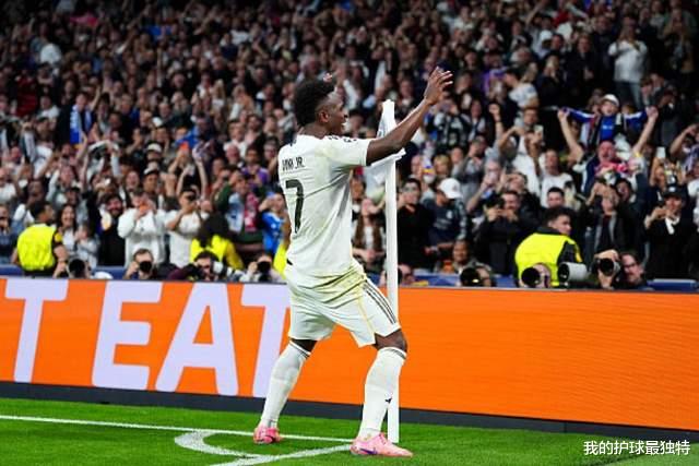 第80分钟,吕迪格头球解围,巴尔韦德中场送出直塞,威尼修斯杀入禁区,半单刀推射命中,身价1.5亿的熊皇打进关键球,皇马反超比分,2-1!