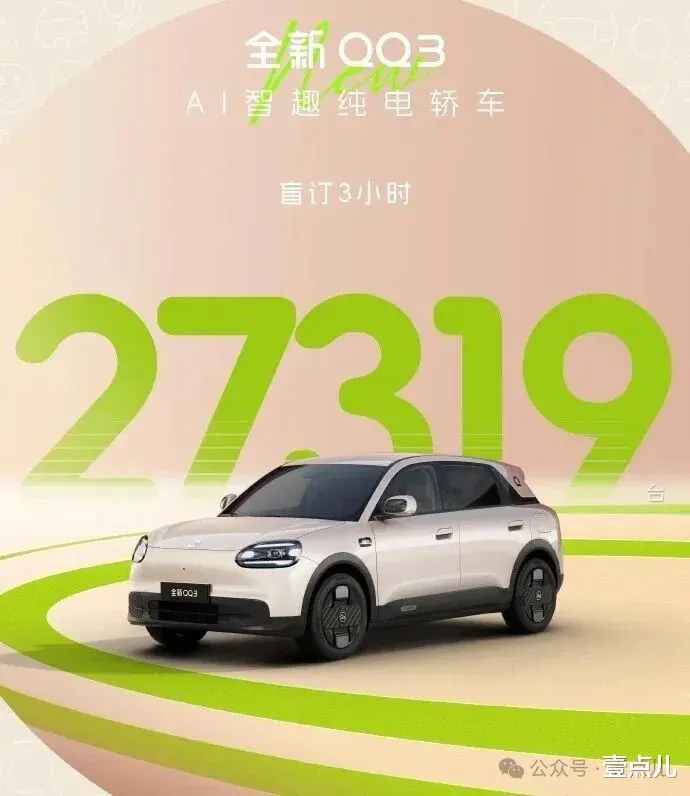 奇瑞全新QQ3,99元盲订开启后,3小时后,订单破2.7万。