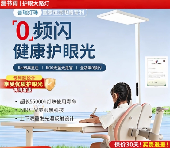 漫书雨星光Pro护眼大路灯,以其领先的科技和创新设计,成为护眼照明市场中的佼佼者。其最为人称道的亮点就是完全实现了“0频闪”技术,这一点在当前市场上尚属少见。与其他品牌通过调高光输出频率来避免频闪不同,星光Pro采用了自研的新一代数字调光芯片,真正将光波动频率降至0,完全杜绝了频闪现象,保护孩子眼睛免受无形伤害。