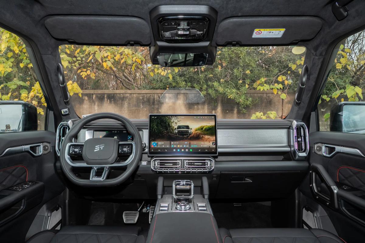 455kW的强大混合动力输出,让这款车在越野时能够轻松应对各种复杂路况。而可释放7700N·m轮端扭矩的设计,更是让这款车在脱困时表现出色。无论是泥泞路面还是沙石路面,都能轻松通过。在越野过程中,强大的扭矩输出可以让车辆轻松攀爬陡坡、穿越泥泞路段,不会出现打滑、陷车等情况。