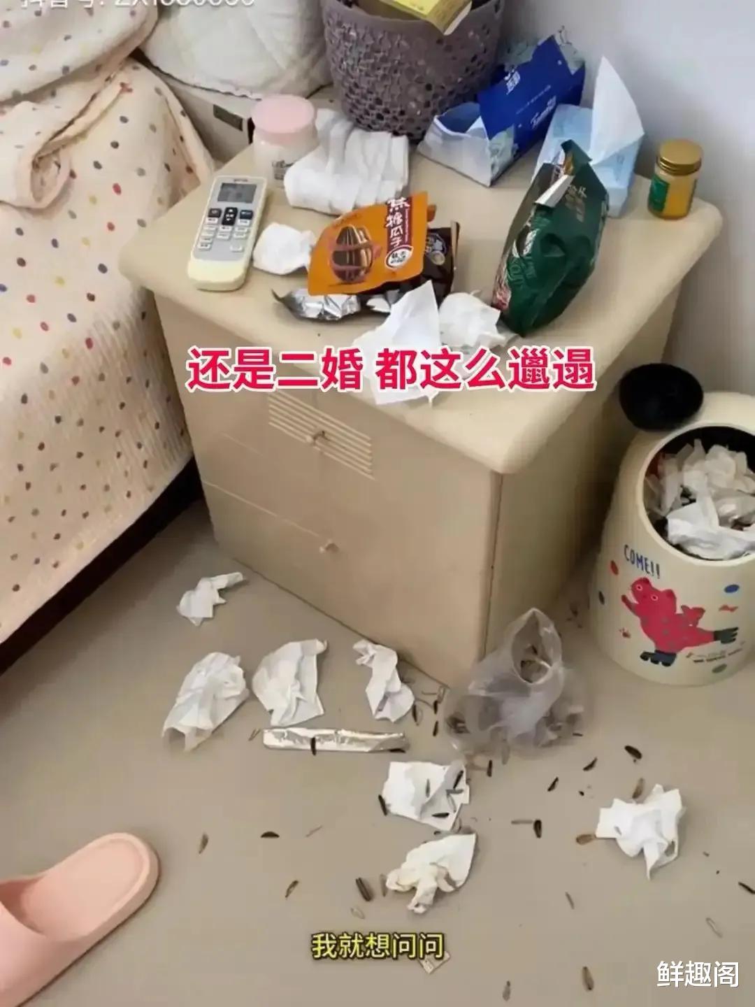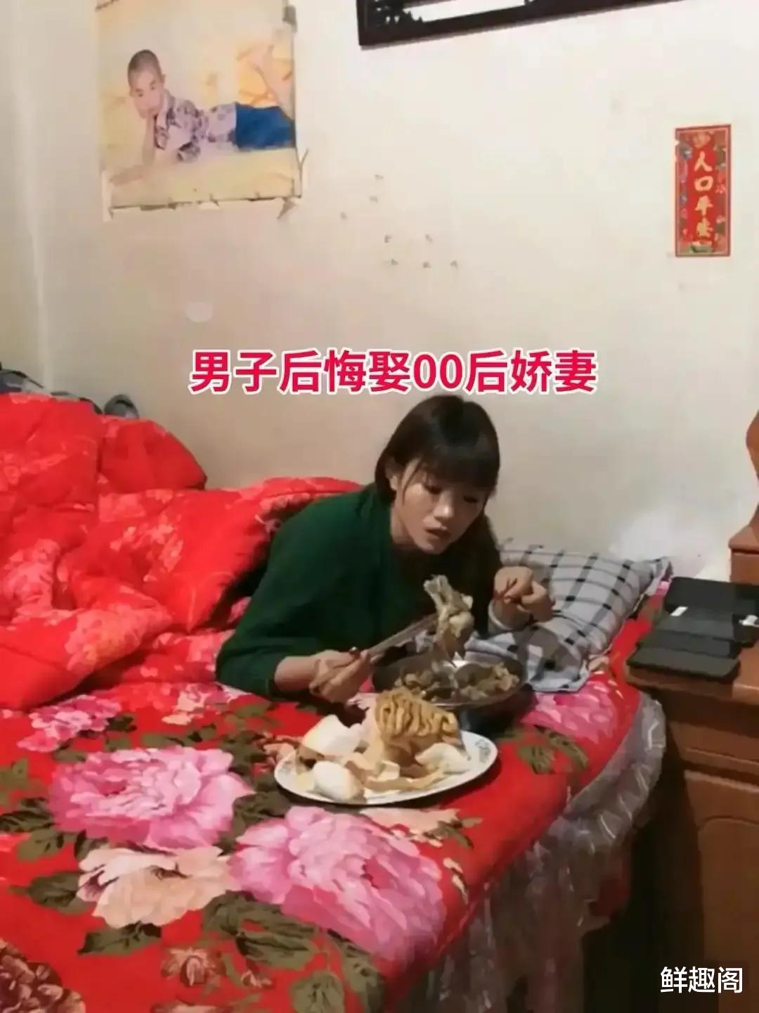然而,结婚刚刚半个多月,男子就开始后悔了。因为他的媳妇儿太懒了,而且他还拍摄了视频,痛哭流涕地说道:“她吃喝都在床上,每天啥也不干!”视频中我们能清楚的看到,女子在床上吃喝,也不洗碗,地上满是垃圾。