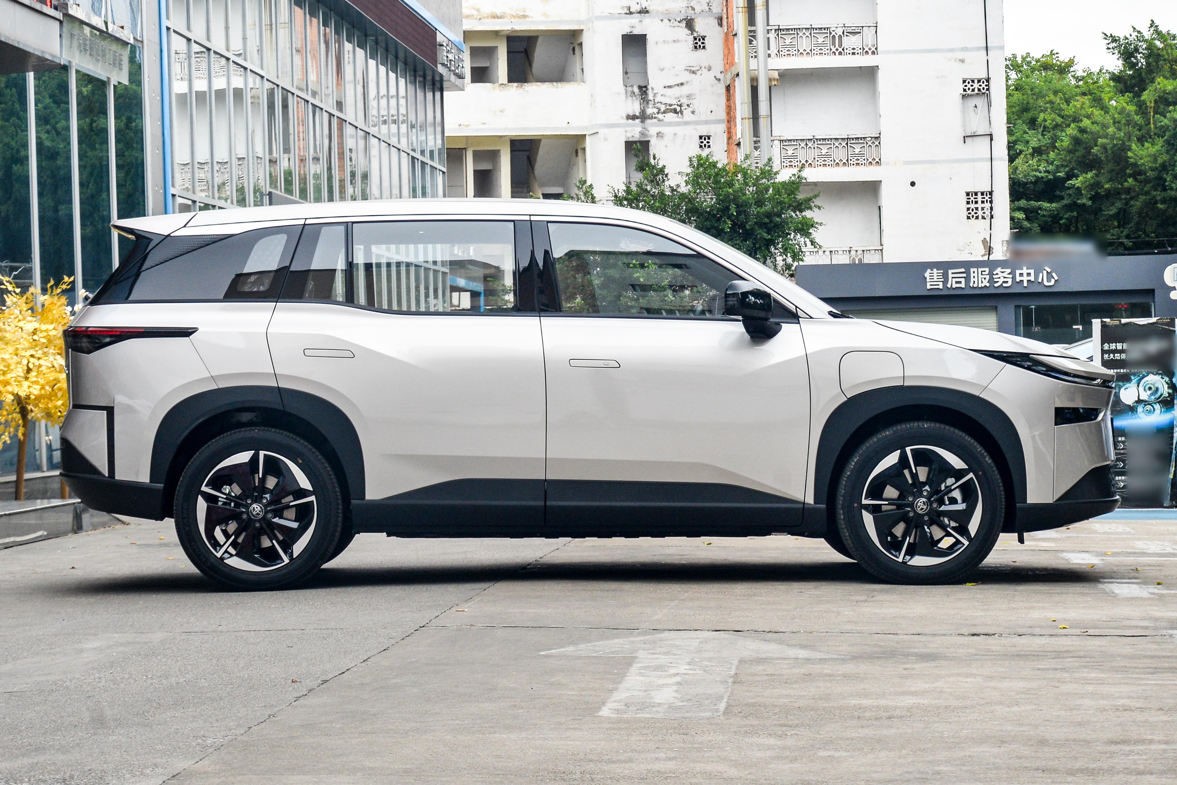 车身侧面线条流畅自然,从A柱到D柱的过渡平滑,搭配隐藏式车门把手和低风阻轮毂设计,不仅美观也兼顾了空气动力学性能。车顶线条从B柱后微微下压,形成溜背效果,为这款SUV增添了几分运动气质。车身尺寸方面,铂智3X的车身长度达到了4600mm,轴距达到2765mm,这一数据在同级别车型中处于前列。
