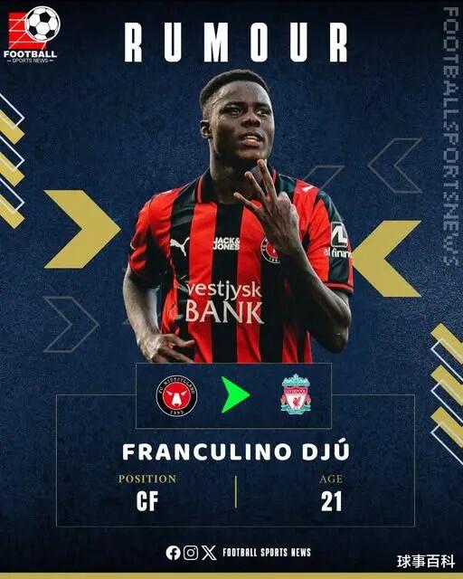 除了塞梅尼奥之外,利物浦还与中日德兰前锋弗朗库利诺·朱传出绯闻。这位21岁的非洲前锋本赛季在丹麦联赛迎来爆发,17场比赛打入16球并送出3次助攻。在转会市场上,他也受到了拜仁、埃弗顿等球队的关注,目前德转身价仅为2200万欧元。