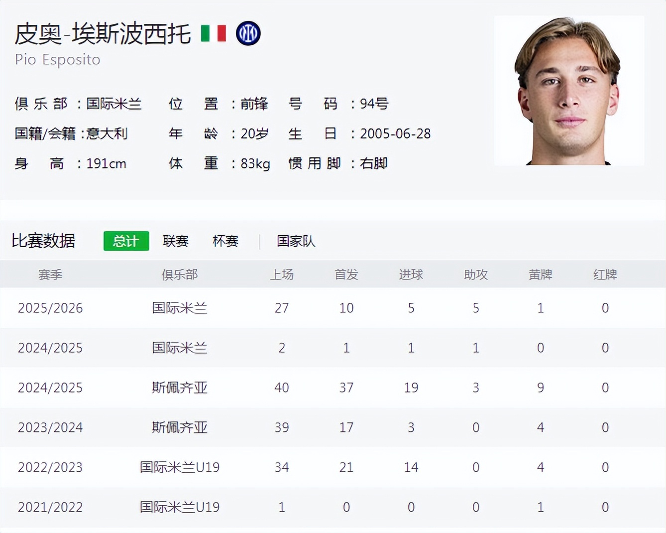逆转战胜比萨后,国际米兰前锋皮奥·埃斯波西托接受意大利天空体育采访时豪气干云。本赛季迄今为止,皮奥-埃斯波西托代表国际米兰出场27次(10次首发),参与10粒进球(5球5助攻),这位上赛季还在意乙打拼的20岁年轻前锋,已经成为了齐沃战术版图上的重要组件。