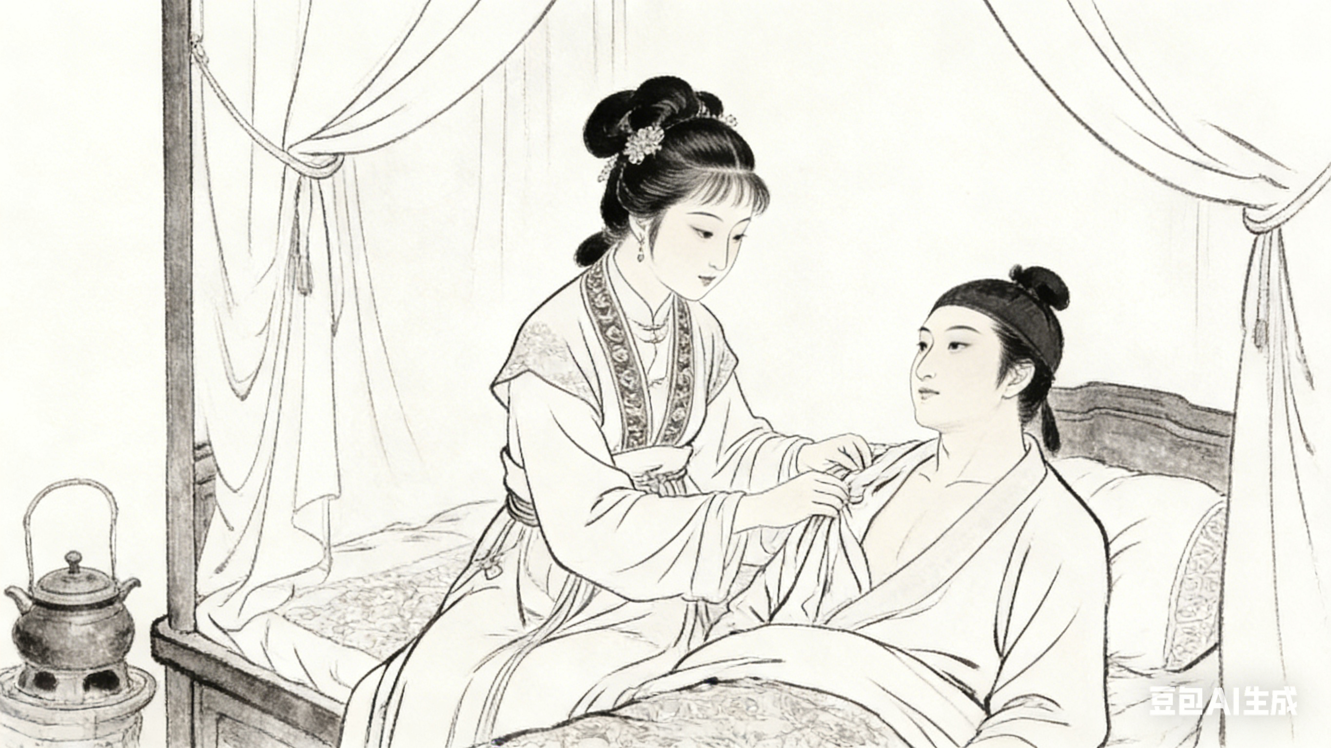 宝钗深知这场婚姻的意义,她选择顺从安排,压抑个人情感。成婚之后,她恪守妻子的本分,悉心照料宝玉,试图挽回他的心。但宝玉心中始终只有黛玉,这场婚姻对他而言是沉重的枷锁。最终,宝玉出家,宝钗年纪轻轻便守寡,独自承担起支撑家族的重任。她的顺从与付出,并未换来幸福,反而落得孤独终老的结局。