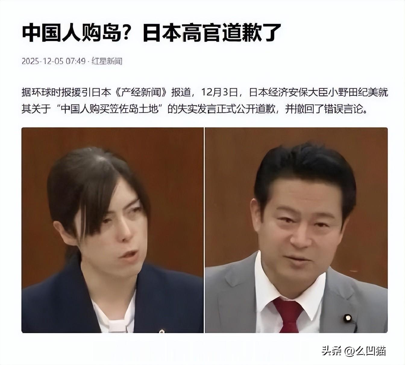 另一条线上,经济安保大臣小野田纪美最近也闹出了不小的风波。她根据一些来源不清的说法,大肆渲染“中国人在大量买日本土地”,还拿这个说法去煽动民众的不安和对华敌意。后来事实证明,这些说法根本站不住脚,日本舆论一片骂声,觉得她是在利用谣言挑动情绪。顶不住压力,她只好对中方表示“歉意”,试图把事情压下去。