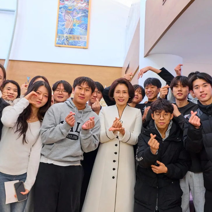 合影时,韩第一夫人都是站在C位,她就像学校的老师一样被学生包围着,笑容灿烂不说还很有亲和力,好似“孩子王”呀!