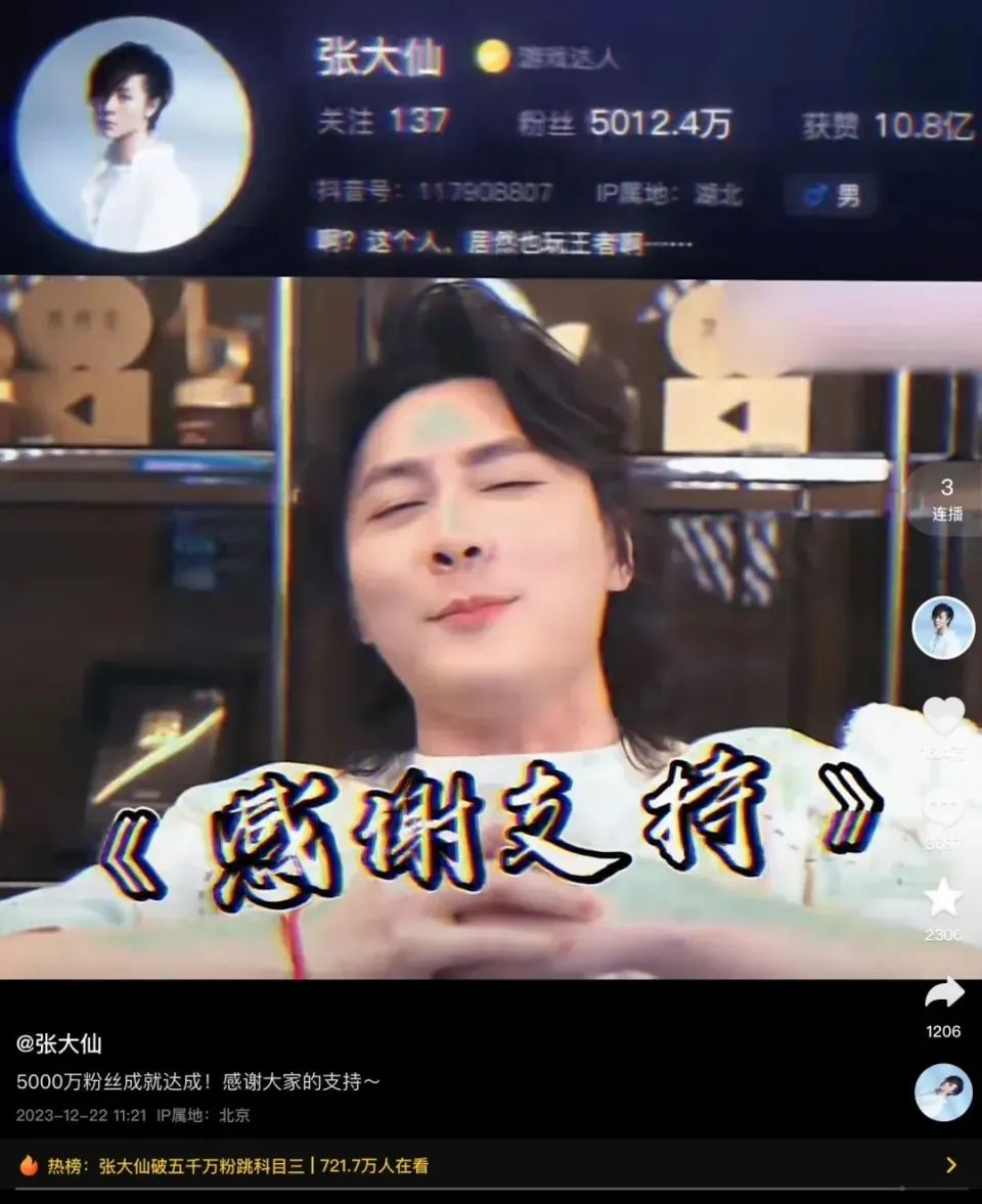 在加盟抖音之后,张大仙作为主播的影响力不减反增。