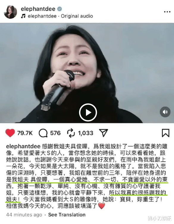 与其说小S这个发文是纪念姐姐,不如说是专门借着姐姐的周年来专门夸姐夫的吧?
