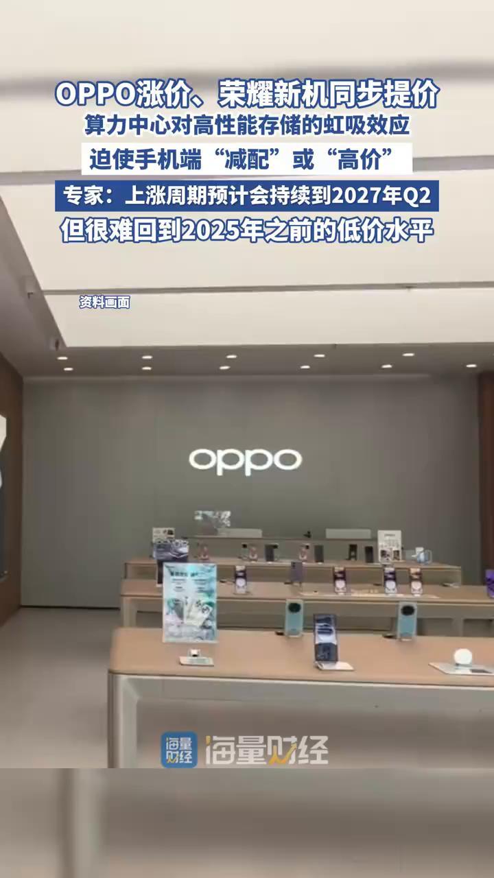 OPPO刚刚完成这轮涨价落地,A系列全线涨300元起,高内存版本涨500元,K系列涨300到500元,一加Ace系列涨300到500元。