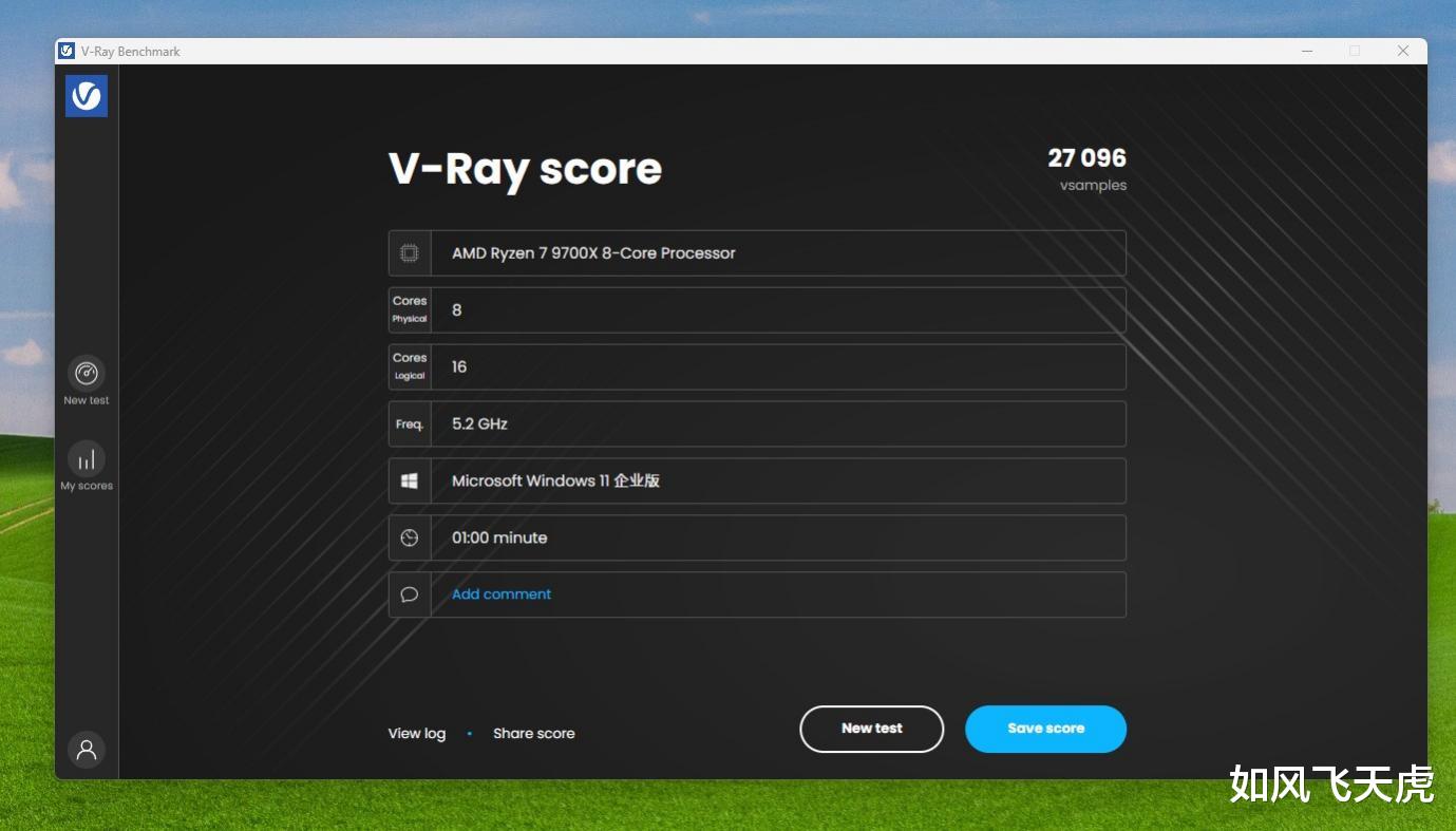 V-RAY测试跑分27096,比起之前的跑分23149提升很多。