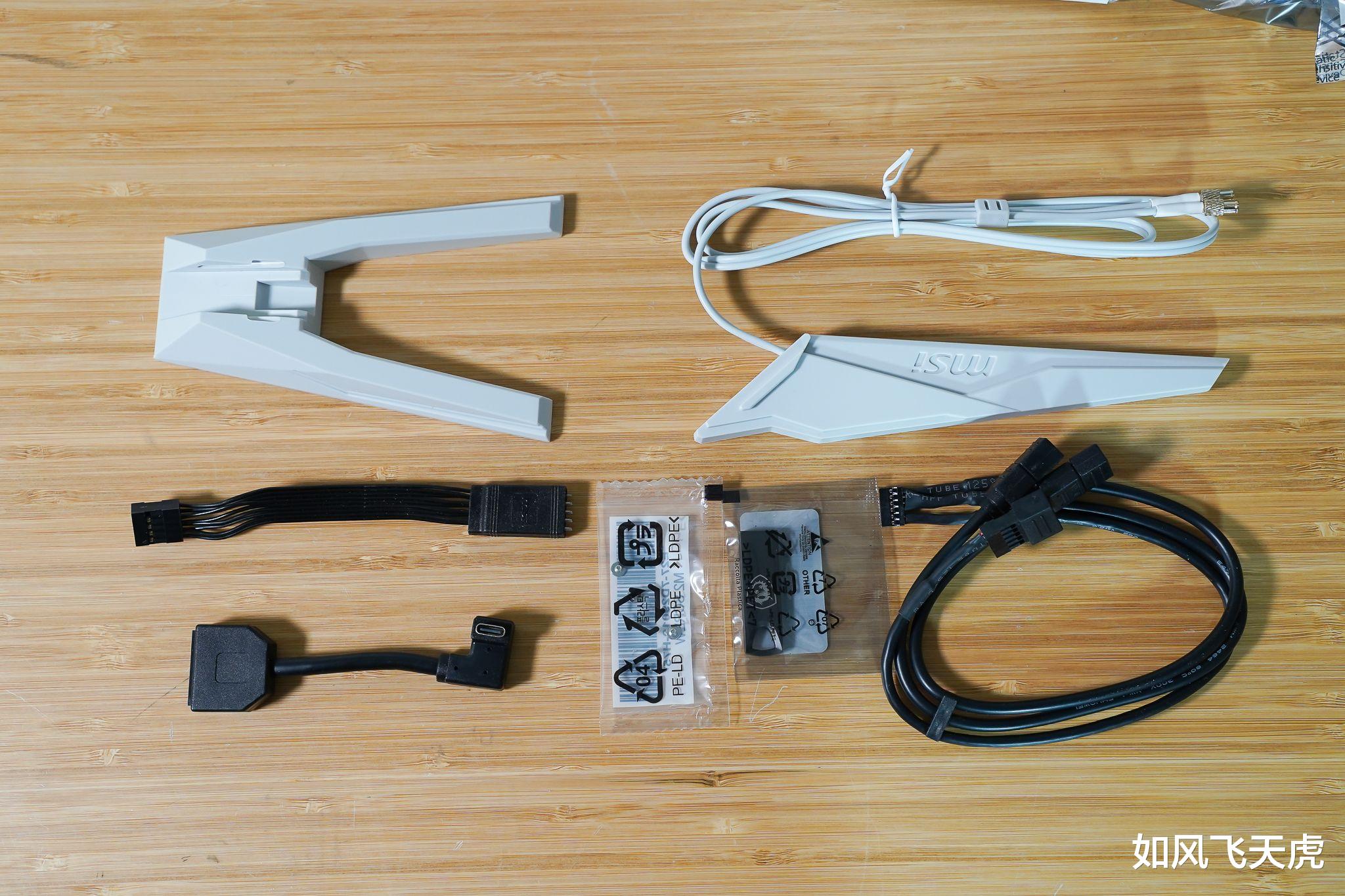 最后来看下配件里,除了5合1 XPANDER扩展卡外,还有一个易插式天线和天线底座。一根EZ转接线,可以转接出一个ARGB、一个风扇和一个USB2.0。一根转接线,可以从5合1 XPANDER扩展卡上转接出5Gbps机箱前置USB接口。一个机箱面板延长线,方便链接机箱面板。M.2螺丝和存放有驱动程序的U盘一个。