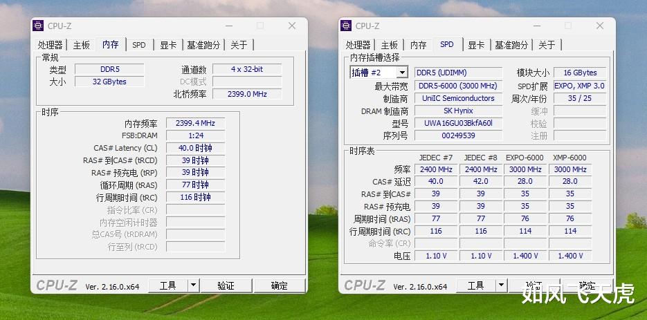 运行CPU-Z,看到内存已经在6000MHz频率下工作了,时序28-35-35-76。