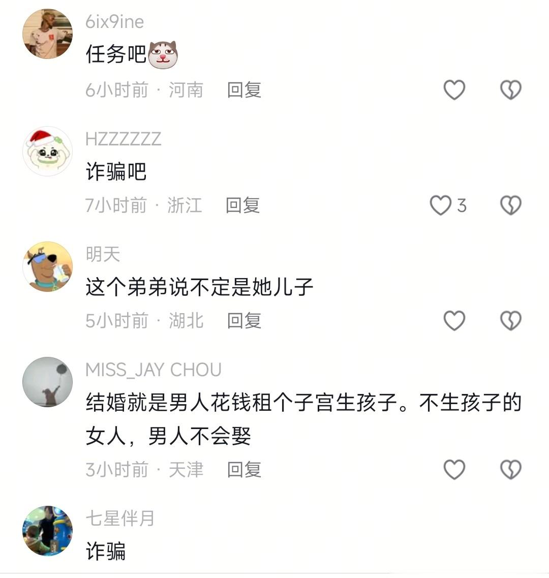 而且有没有一种可能就是他说回家去照顾他的弟弟,其实是在照顾他跟前夫生的那个孩子?现在就是想弄个钱骗个彩礼?