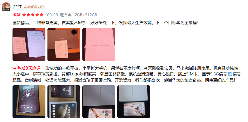另一位用户则给出了“国货精品,平板非常完美”的评价。他形象地将这款产品定义为“小平板大手机”,并晒图表示:“插上SIM卡,信号超强”。