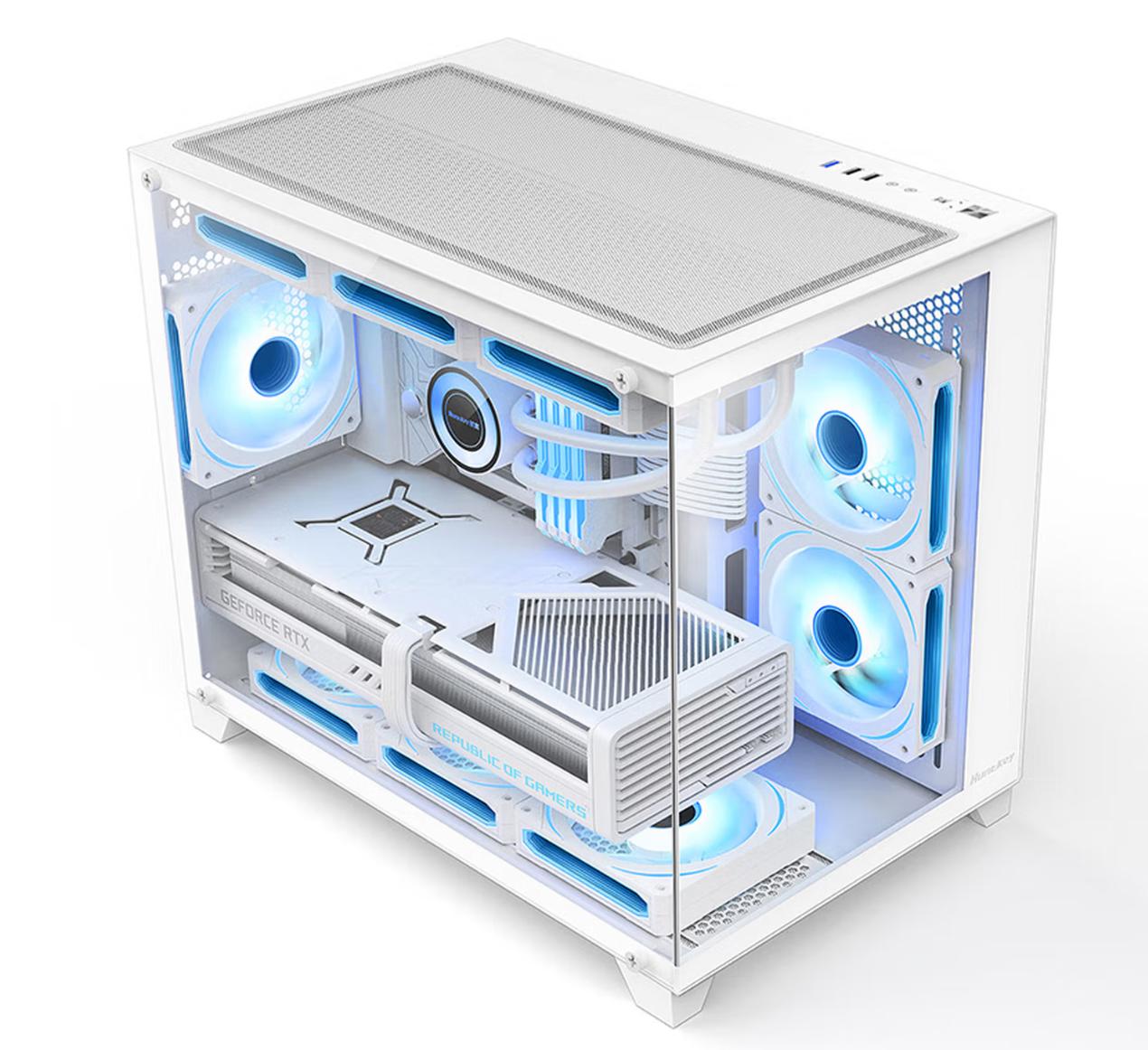 至于机箱,航嘉S960暴风雪X白色全景版就完全契合“白色海景房”的主题,而且完美适配B850M这类M-ATX主板。