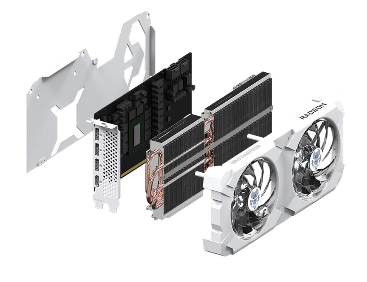 瀚铠AMD RADEON RX 9070 16GB OC白色超合金双风扇显卡从导流罩、金属背板到I/O区挡板实现全维度纯白覆盖,视觉上浑然一体,凌厉线条勾勒的导风罩尽显机械科幻感,281.84x132.9x50.15mm的紧凑三围与2.5槽厚度,让它对大多数ATX/mATX机箱都有着出色的兼容性,配备RGB灯效的双风扇更是完美适配通透侧透机箱的展示需求。