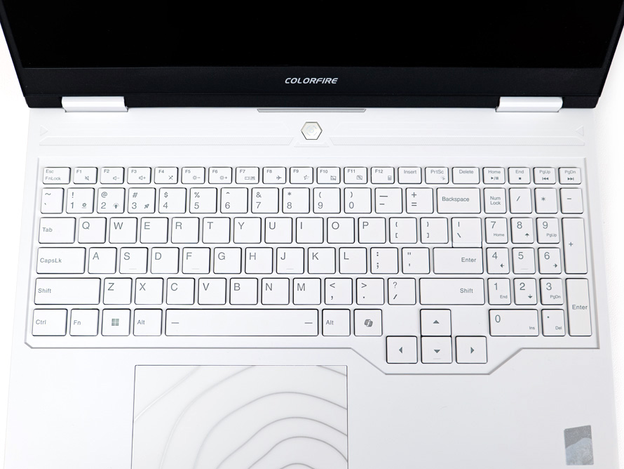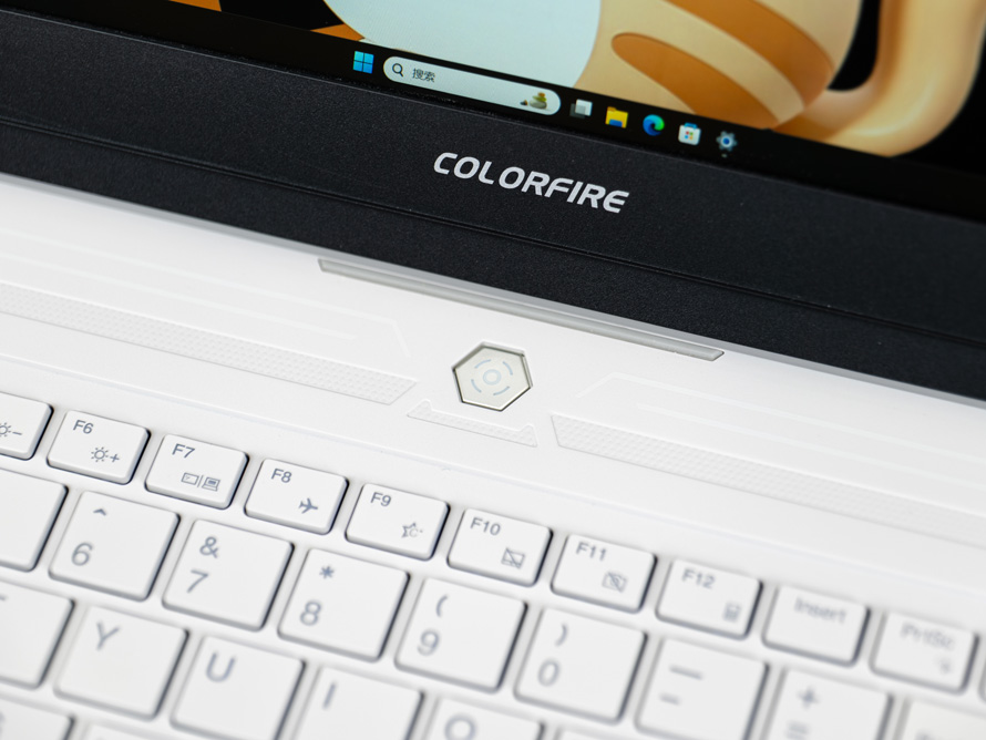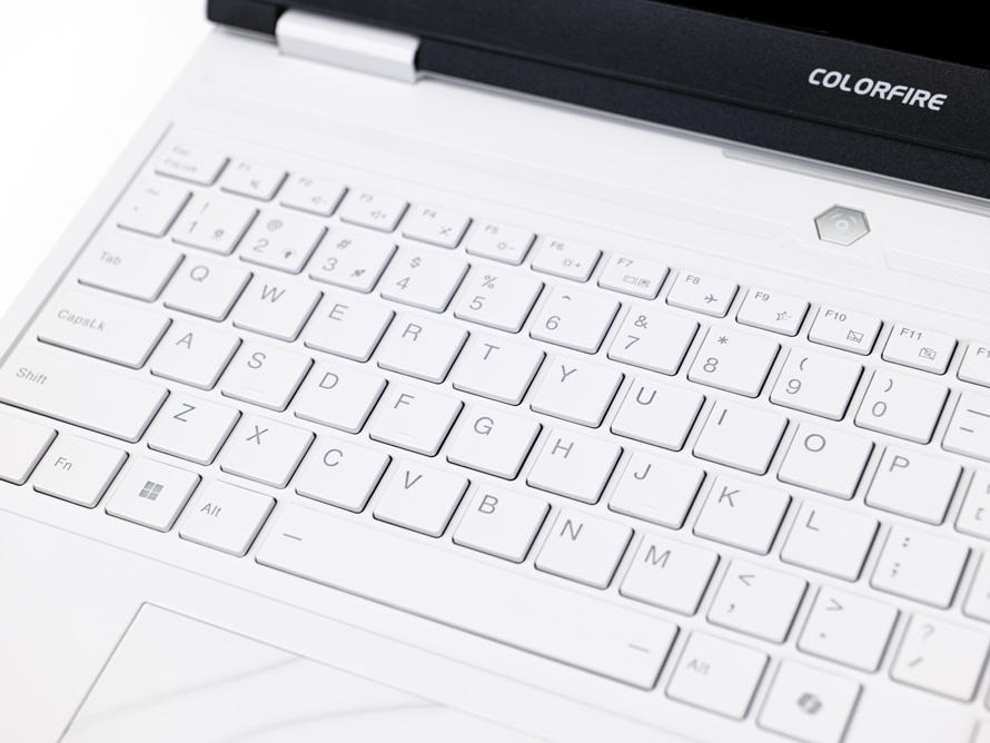 六边形的独立开机按键,位于键盘上部居中位置。表面采用金属漆喷涂,为整机增加一丝质感。