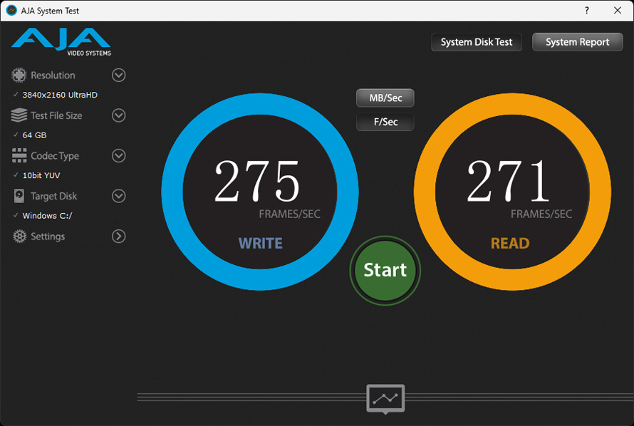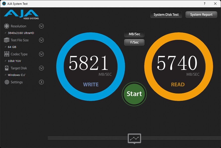 使用AJA System Test基准工具,来测试在视频剪辑和后期工作中SSD的读写能力。