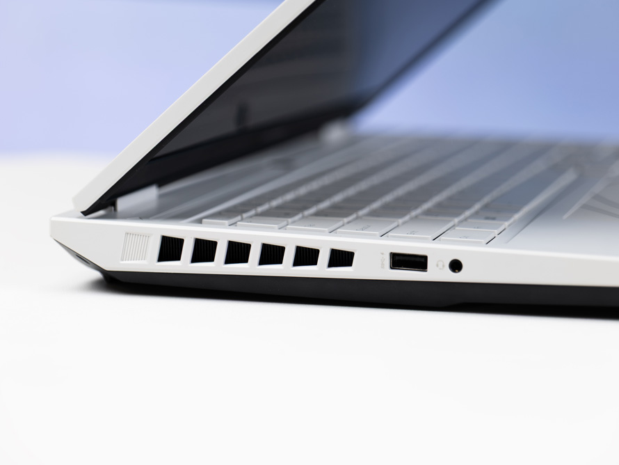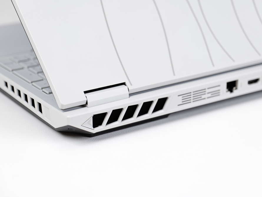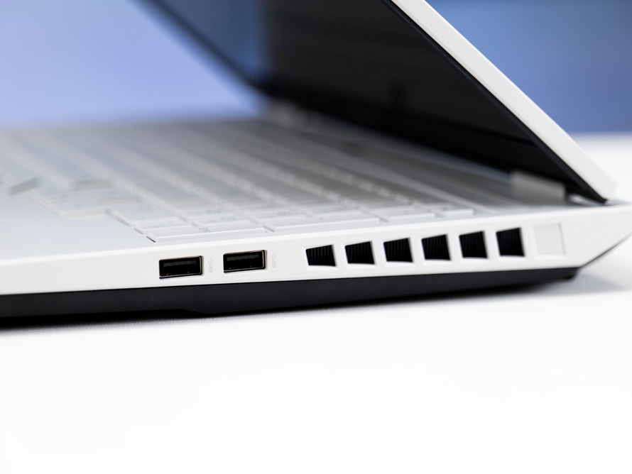 其余较为常用的接口被分别放置在了笔记本的左右两侧。左侧为一个USB-A 5Gbps接口和3.5mm音频接口,右侧为两个USB-A 5Gbps。同时在两边还各设有一个出风口,以进一步提升散热能力。