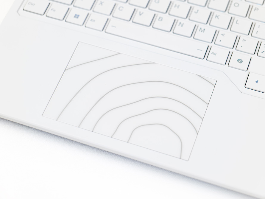 触控板位置与A面类似,印有银灰色的不规则圆圈装饰,使整机的风格保持一致,也为C面增加一丝萌趣。