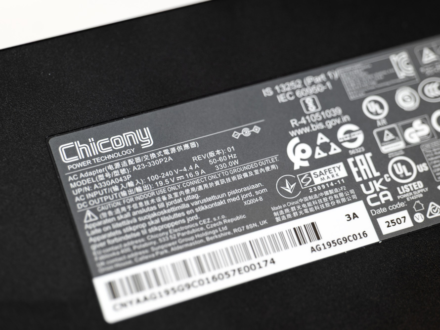 适配器的额定功率为330W。