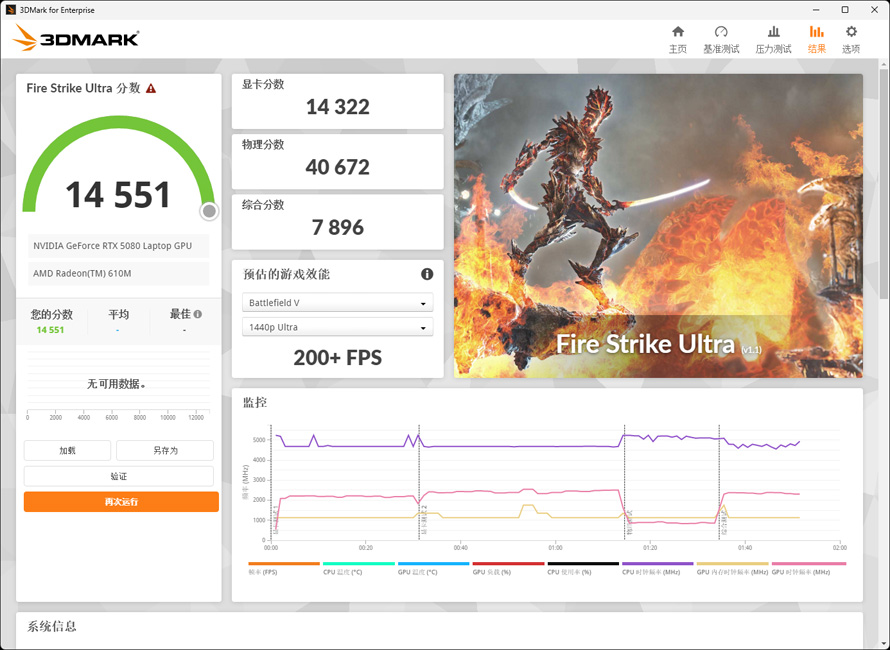 作为4K DX11基准的Fire Strike Ultra得分为14551。