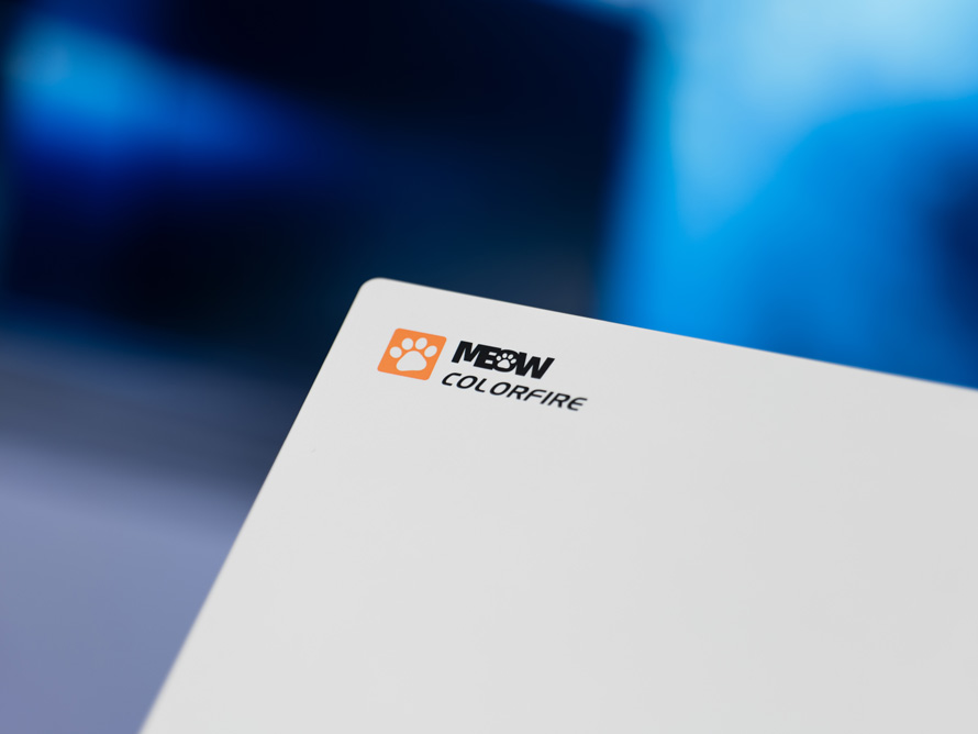 A面的左上角还有一个萌系的COLOFIRE MEOW的小LOGO。小爪印还用橙色做了高亮点缀,毕竟MEOW的形象是一只橘猫。