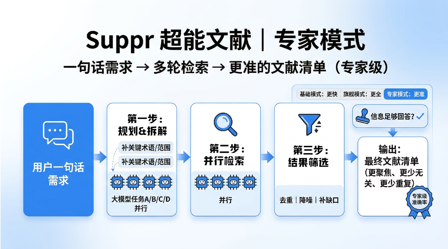 如果你最近正在开题/写综述:别先把自己困在关键词里。去 Suppr 超能文献用一句中文把需求写清楚,选「专家模式」,让它用多轮检索 + 多个大模型并行先帮你把“该读的关键文献池”收敛出来——你再去精读和写作,会轻松很多。