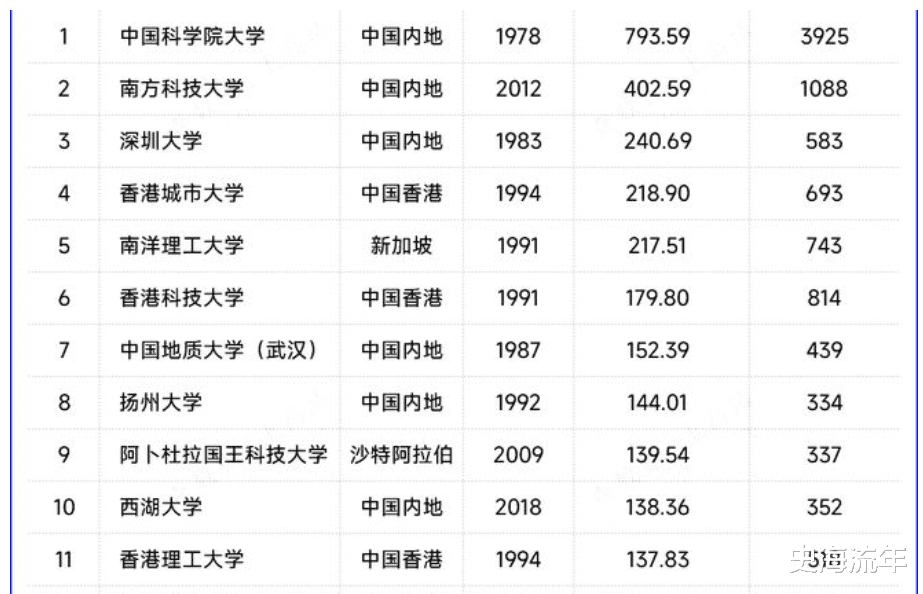 此外,中国地质大学(武汉)排名全球第七位。扬州大学排名全球第八位,西湖大学排名全球第十位。这或许也是实至名归的事情,深圳大学、扬州大学、西湖大学都是新型的高校,而且是“四非高校”,值得学子们一起来点赞。