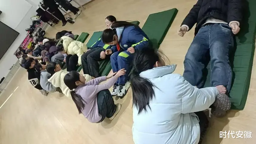 室内场地与小广场上,满是孩子们的活力身影。小广场上耐力练习、坐位体前屈、一分钟跳绳依次进行;室内场地里,仰卧起坐的发力透着韧劲。没有“争第一”的紧绷,只有“好好完成”的踏实,同学间互喊“加油”,汗水里浸润着力量与温暖的同伴情谊。