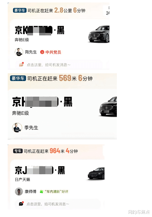 另外,从网友分享的订单截图来看,不少朋友会注意到一个小细节:普通车(含专车、特惠车)司机在平台上统称“某某师傅”,偏向职业称呼;而豪华车司机显示的是“某某先生”。
