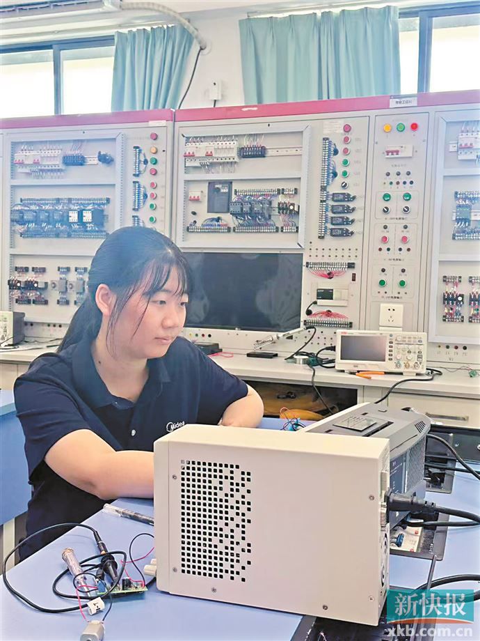 从本科高校到技工院校,刚踏入校园邓怡茜有些恍惚。但一个月下来,她已渐渐适应了学习节奏。“因为之前没接触过,一开始接收知识是有点慢的,后来就多问同学和老师,慢慢跟上来。”她笑言,自己的动手能力在女生中算不错的,这一点让在求职中备受打击的她恢复了些许信心。
