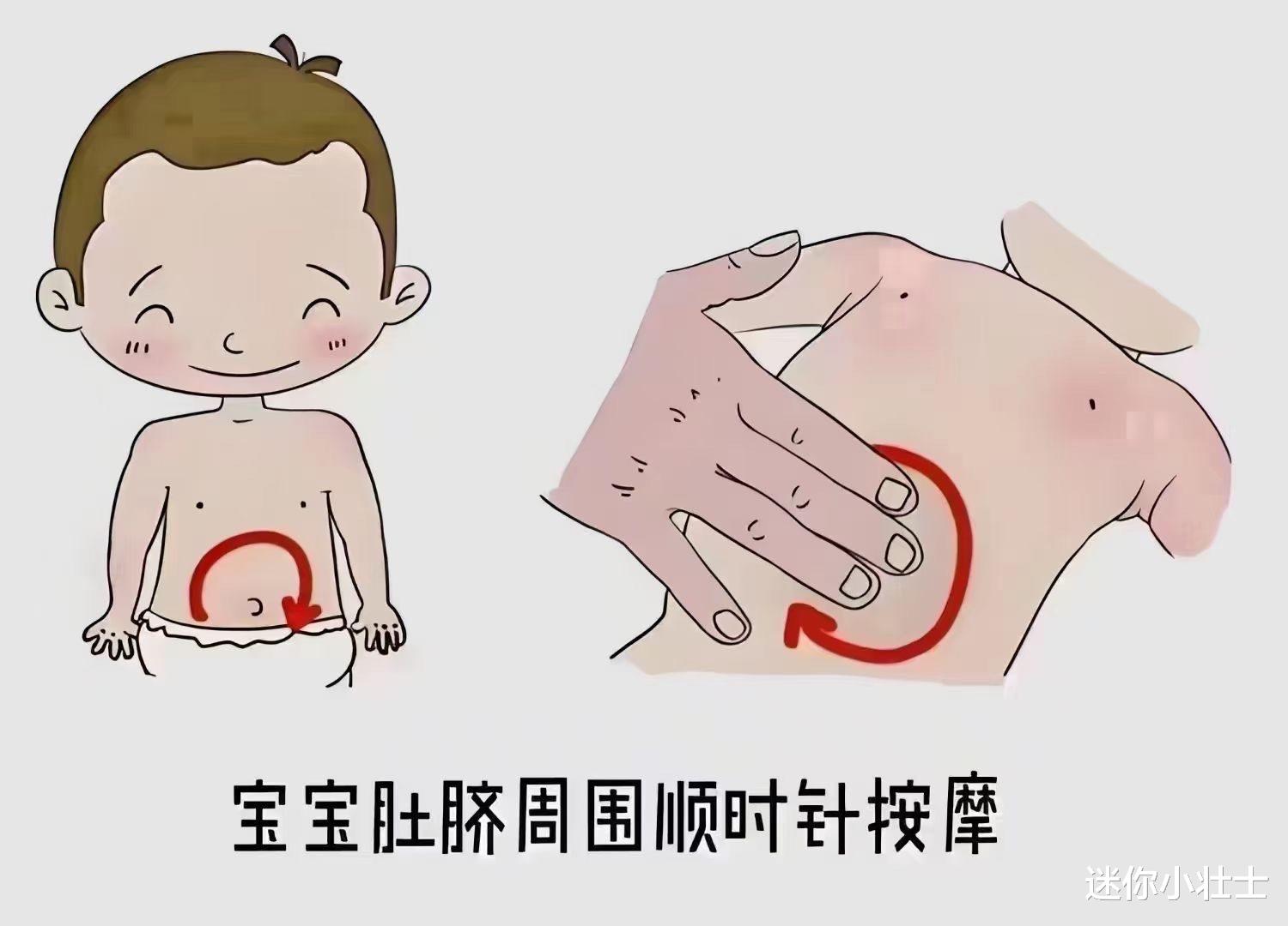•顺时针摩腹:在宝宝餐后1小时,用掌心温热后,以肚脐为中心顺时针轻柔按摩5-10分钟。这能直接刺激肠道运动,帮助积存的食物向下推进。
