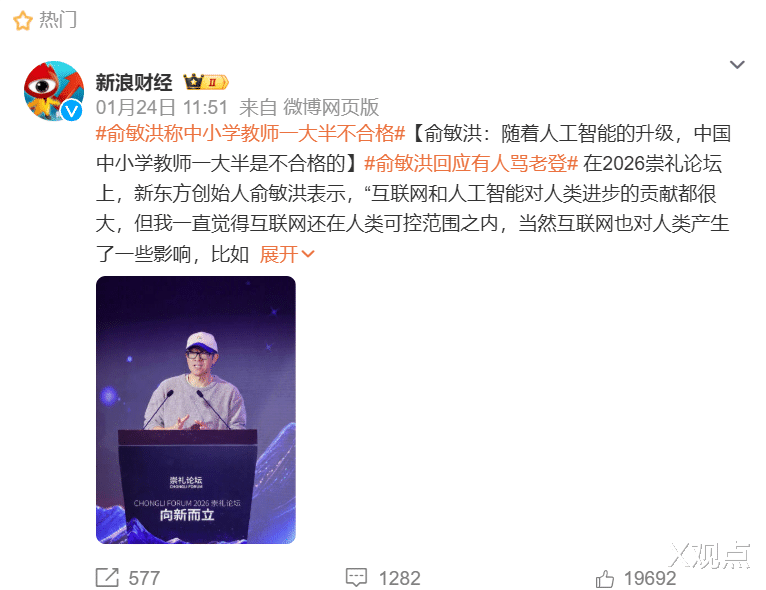 这句话像一颗深水炸弹,在2026年的舆论场中轰然炸响。说这话的人,是新东方创始人俞敏洪。