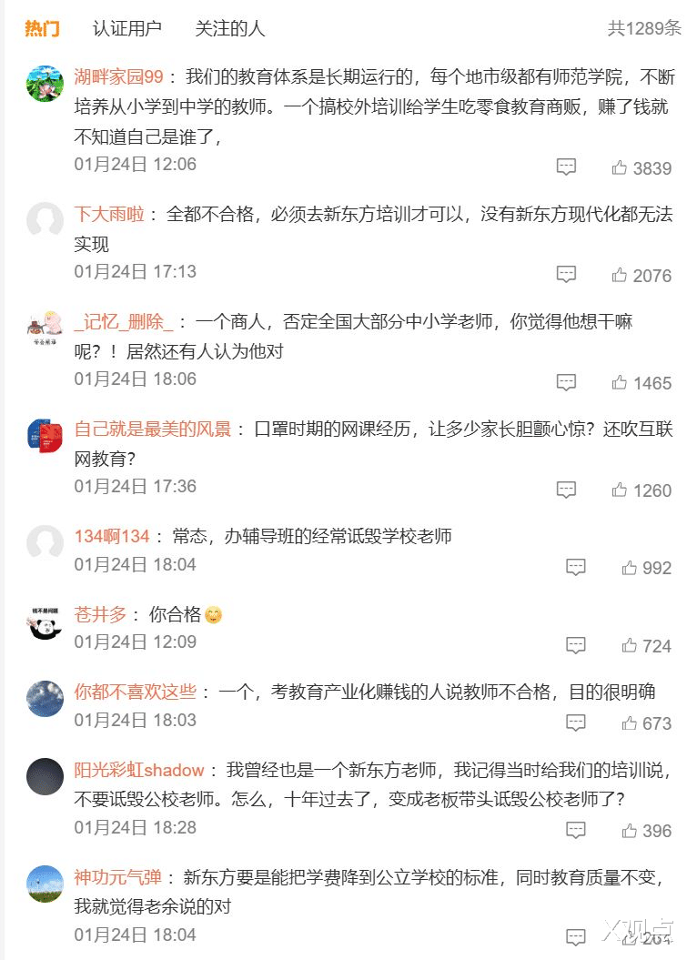 “俞敏洪自己的机构合格吗?”:有人翻旧账:“之前教培整顿,不就是因为很多机构老师不合格吗?新东方的老师就都合格?”