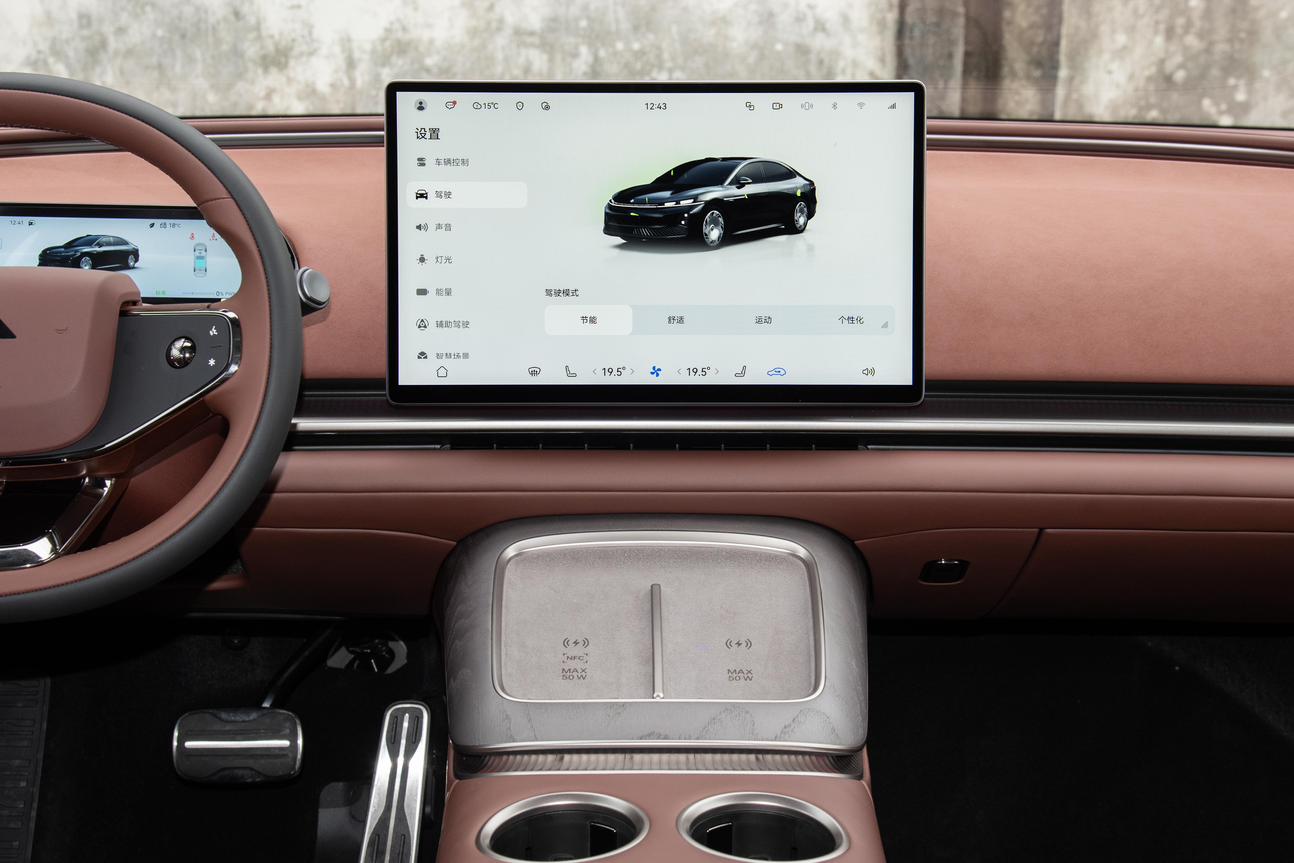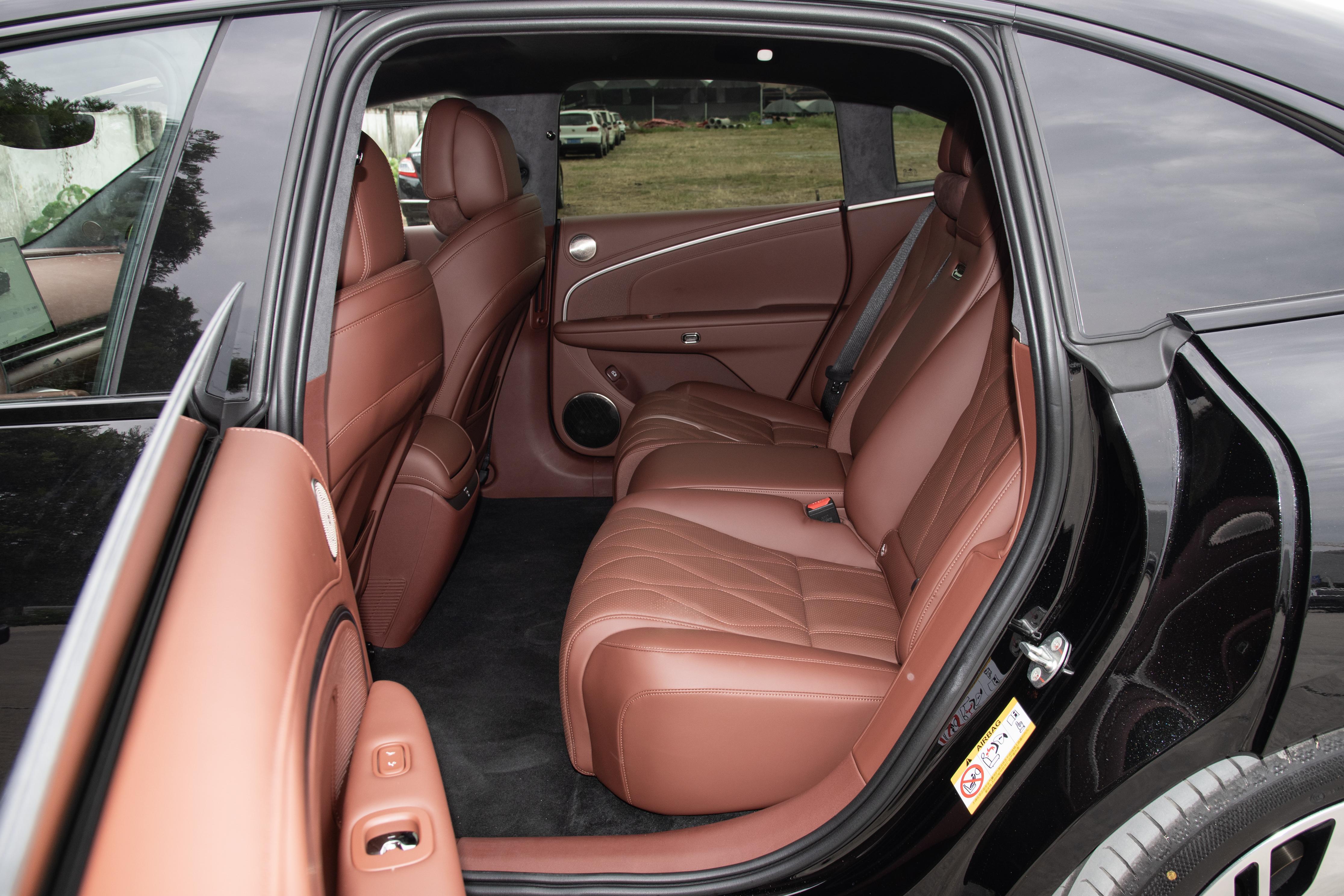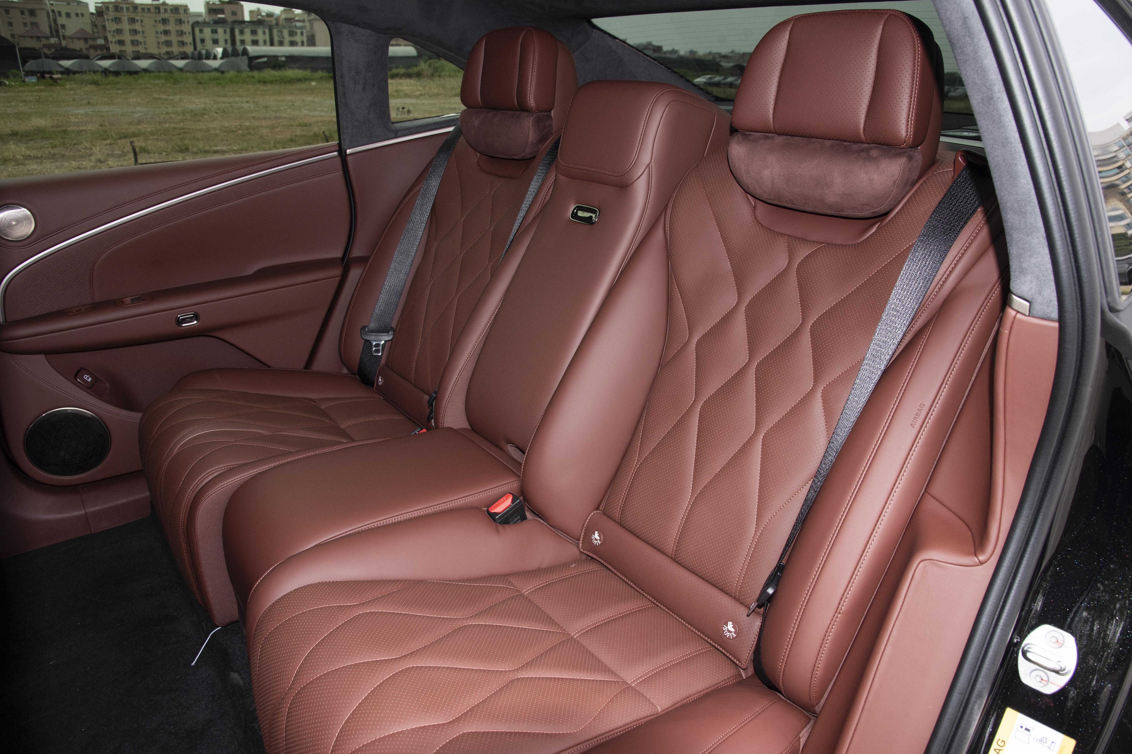 空间表现是昊铂A800的核心优势之一,3020mm的超长轴距确保了宽敞的车内空间,后排腿部空间超过900mm,即便是身高1.8米的乘客也能轻松翘起二郎腿,获得舒适的乘坐姿态。座椅配置十分丰富,前排座椅采用菱格缝线工艺与密集打孔处理,支持8向电动调节、加热、通风及3种模式按摩功能;后排座椅支持4向电动调节与加热,中央扶手集成触控屏,可独立控制空调、座椅及多媒体系统,满足后排乘客的个性化需求。