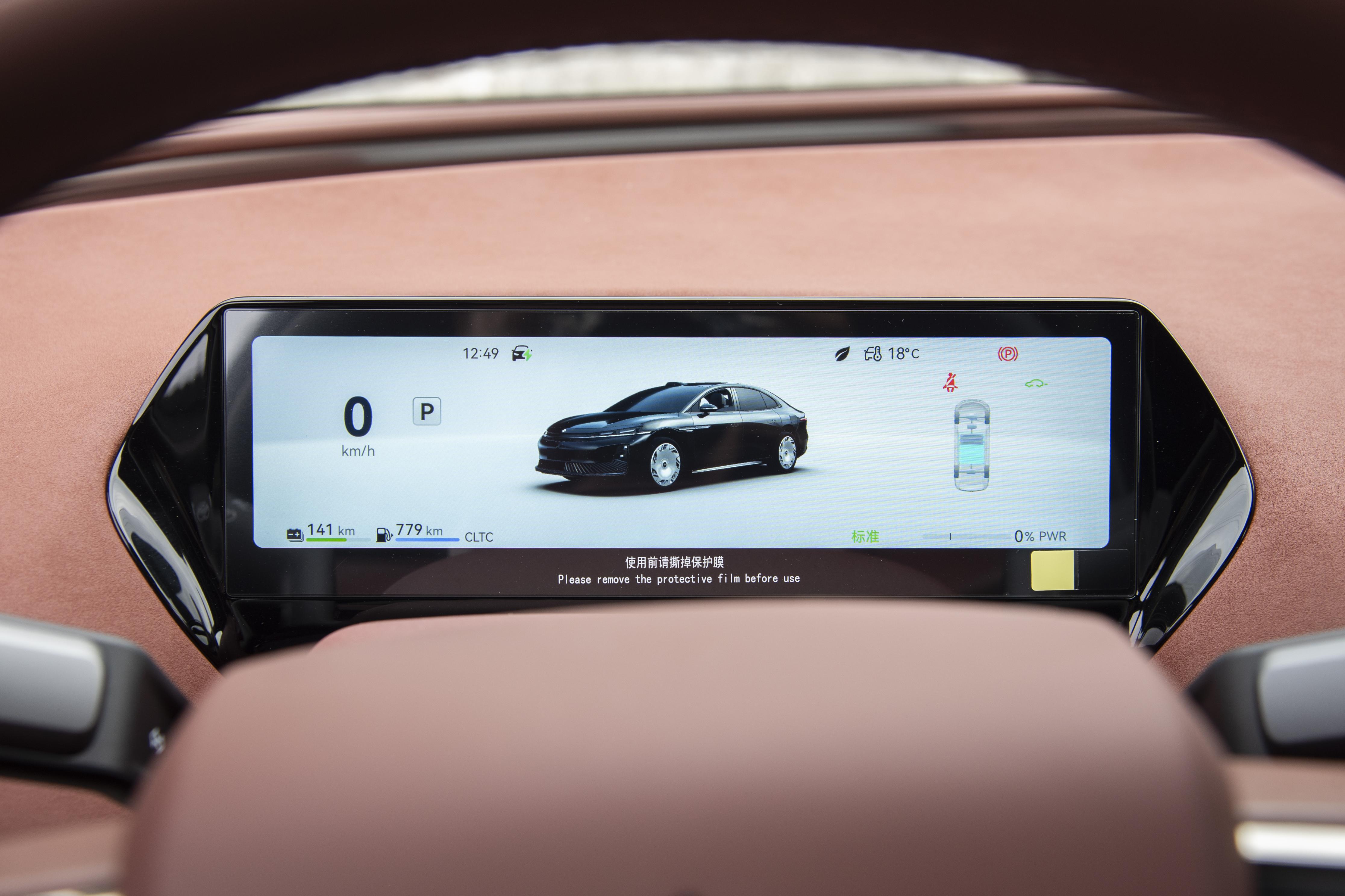内饰设计以“环抱式智能座舱”为核心,营造出豪华舒适且科技感十足的驾乘环境。座舱内大面积采用Nappa真皮包裹,仪表台、门板等部位辅以精致的缝线工艺与金属饰条点缀,触感细腻,质感出众。经典的T字形布局重心偏向驾驶者,10.25英寸全液晶仪表与14.6英寸悬浮中控屏形成良好的信息交互组合,配合27英寸W-HUD抬头显示,让驾驶信息获取更加便捷安全,无需低头即可掌握车速、导航等核心数据。