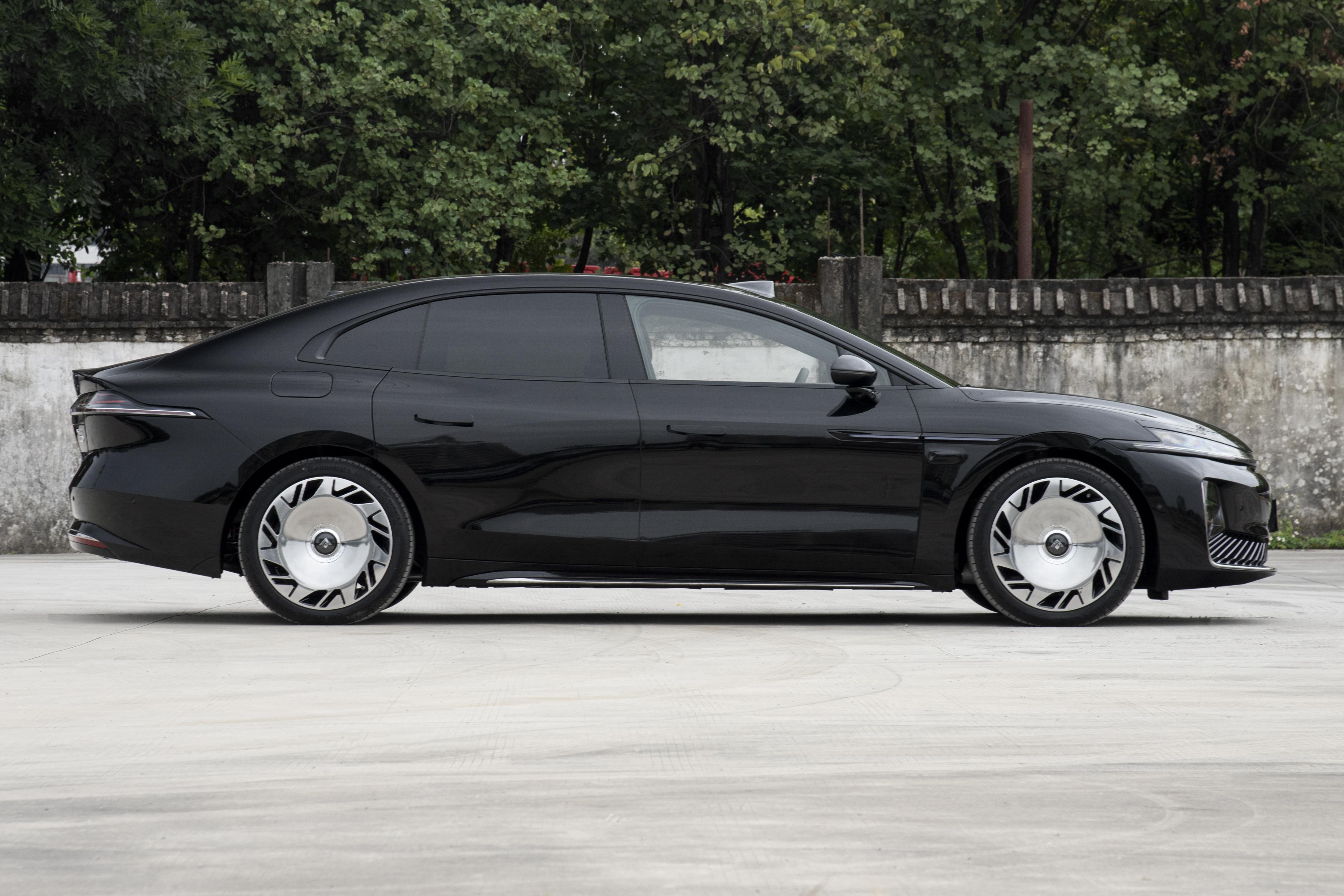 昊铂A800的外观设计遵循“科技与优雅共生”的理念,整体造型流畅大气,既展现了旗舰轿车的庄重感,又通过细节设计凸显科技属性。车身尺寸达到5130/1966/1500mm,轴距长达3020mm,修长的车身比例不仅带来了舒展的视觉效果,更为车内空间布局奠定了基础。前脸采用封闭式进气格栅搭配分体式LED大灯,日间行车灯以贯穿式设计延伸至车身侧面,增强了横向视觉宽度;下方进气口采用运动化造型,既优化了空气动力学性能,又为前脸增添了层次感。车身侧面线条简洁流畅,从车头延伸至车尾的腰线勾勒出优雅的溜背造型,配合隐藏式车门把手与大尺寸多辐轮毂,既降低了风阻系数,又提升了整车的科技感与豪华感。车尾采用贯穿式LED尾灯,灯组内部细节丰富,点亮时呈现出细腻的光影效果,夜间辨识度极高;下方扩散器造型与双边共两出排气布局,为整车增添了运动气息,同时也优化了空气动力学表现。