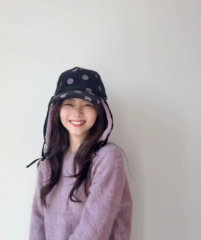 这两天,谭松韵的一组新照片刷屏了。不是因为什么大事件,就是一组日常穿搭照,却让无数人忍不住多看几眼。照片里的她,穿着一件软糯的香芋紫毛衣,头上戴着一顶波点雷锋帽,对着镜头笑得眉眼弯弯。