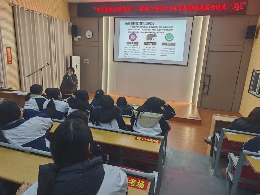 青春期是人生中最璀璨也最敏感的阶段,像一株悄然抽芽的绿植,既渴望阳光雨露,也难免面临风雨迷茫。为了帮助女生们更好地接纳自我、珍视情谊、守护边界,2026年1月14日、1月28日,淮滨二高举办了以“正直勇敢,终身浪漫”为主题的女生青春期健康成长讲座。本次讲座由李礼、宋坤淼、冯真真三位老师授课,以真诚分享、互动答疑的形式,为在场女生送上了一份实用且温暖的成长指南,助力大家在青春路上从容前行。