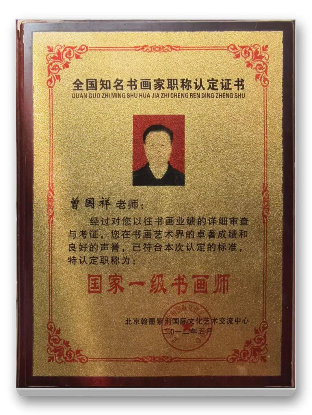 曾国祥,1954年3月26日生,男,四川岳池人,大学文化,书法研究生,中共党员,1974年参加教育工作,历时四十年,优秀教育工作者!高级教师!现为四川、岳池、广安、龙泉驿区书法家协会会员。多次在全国或全球书法邀请赛中,荣获金奖和证书!被授予"中国当代杰出书画艺术家"称号!六十年中对书法艺术的楷书、粉美化人外表行书、草书、隶书、篆书有着很深层次研习,编著了软硬笔两大教材,计8本。