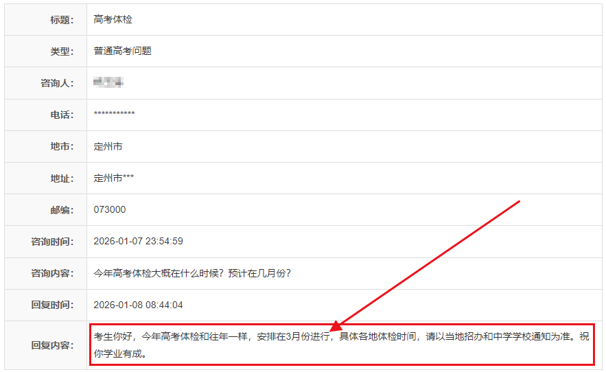 2026年河北单招体检与高考体检同步,统一在3月份开展,各地具体体检时间不统一,以当地招办及所在中学通知为准。