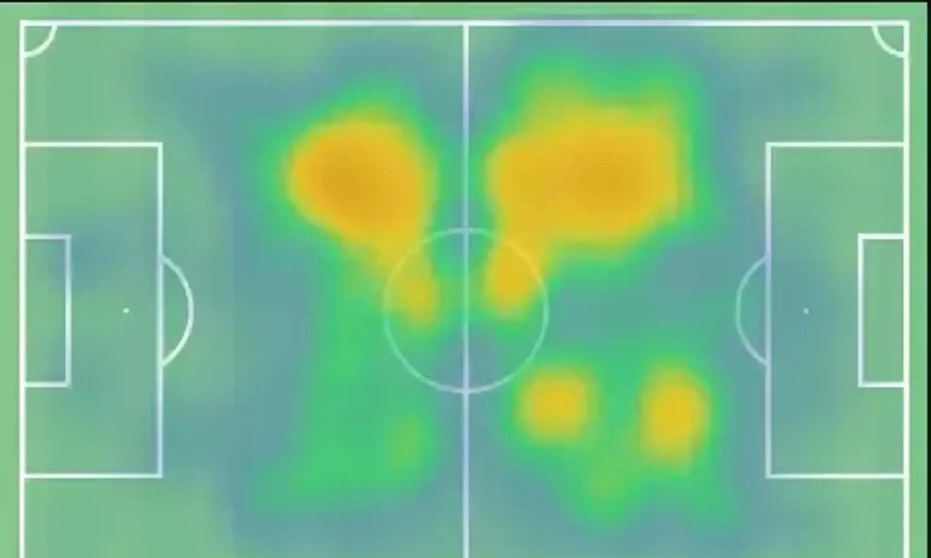 本赛季的热点图则显示出更均衡的分布——而最热的区域……在曼联自己的半场。