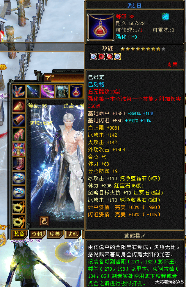 第六位10雕极限6级号:血上限、冰火176、内防、体身所属!这个项链体力点足足有100点!
