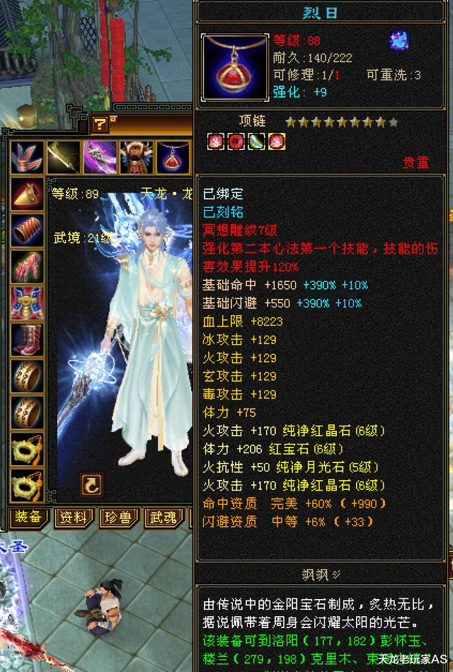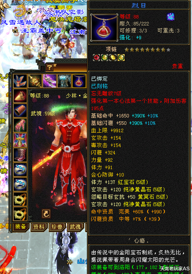 最后乱入一个5级卡级少林的项链,也是超极品:血上限、玄毒154、闪避、力量、体力、会防!