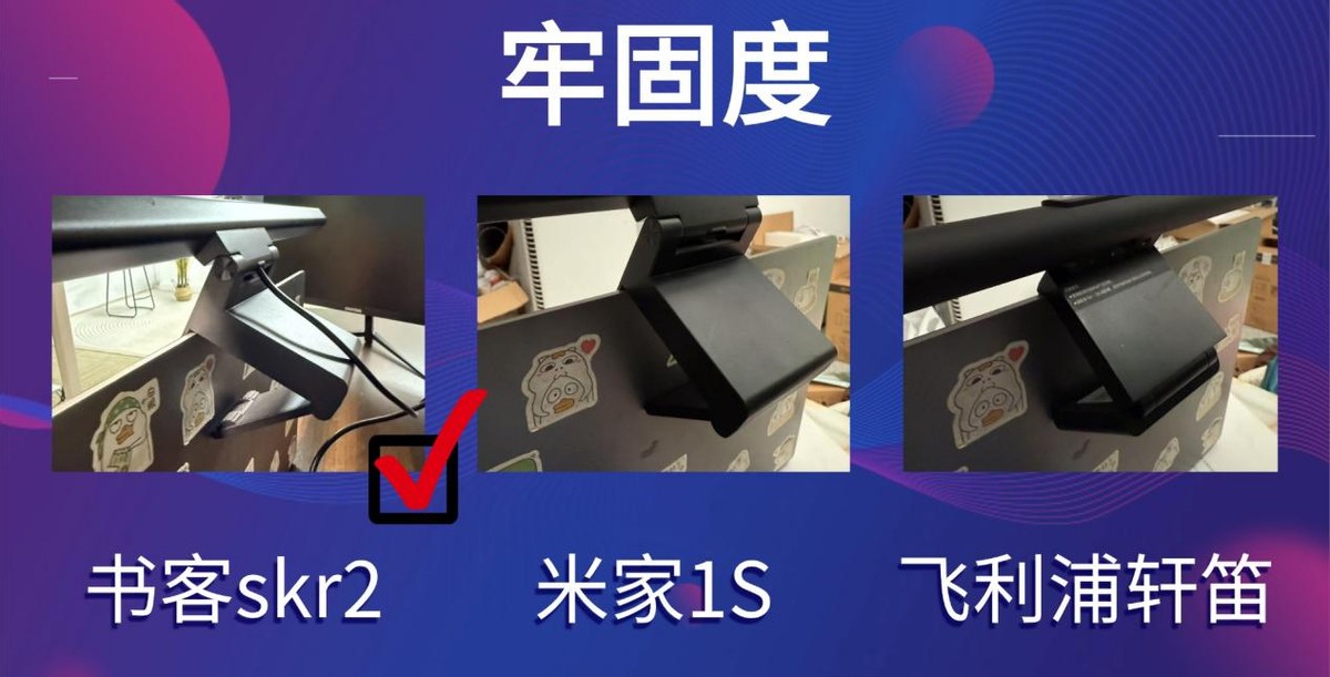 米家屏幕挂灯值得买吗?书客SKR2牢固度表现最好,安装后贴合稳固,轻微晃动也基本不会位移,使用更安心。米家1S属于正常水平,日常使用没问题,但在刻意晃动时会有轻微位移,需要稍加注意。飞利浦轩笛稳定性相对较弱,晃动时更容易松动,甚至有滑落情况,使用时需要多留意。