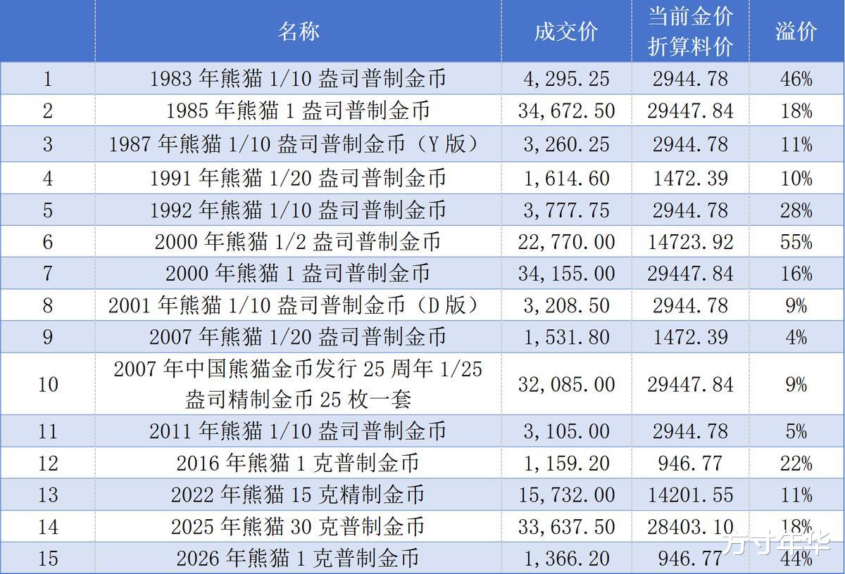 同样是1克金,2026年“首日发行”的金币(第18行),溢价率高达44%。而同为1克金、图案普通的2016年版(第13-15行),溢价率是22%。这高出的部分,就是市场为“特殊概念”和“艺术预期”付出的溢价。