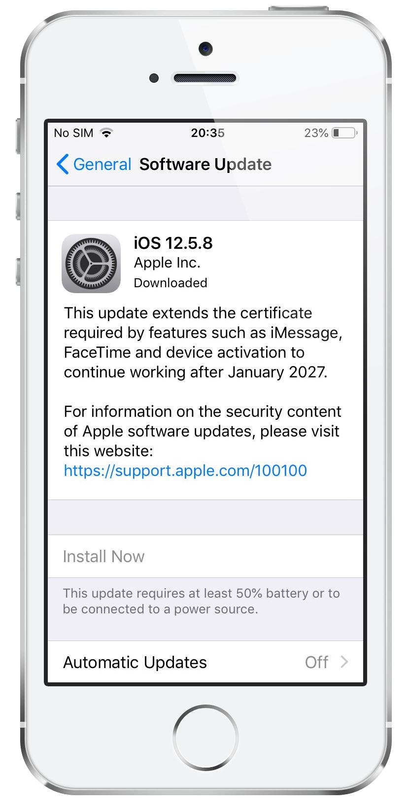 而 iOS 12.5.8 则有些特殊,该版本主要延长了 iMessage、FaceTime 以及设备激活等核心服务所需证书的有效期,确保这些功能至少在 2027 年 1 月之后仍可继续使用。