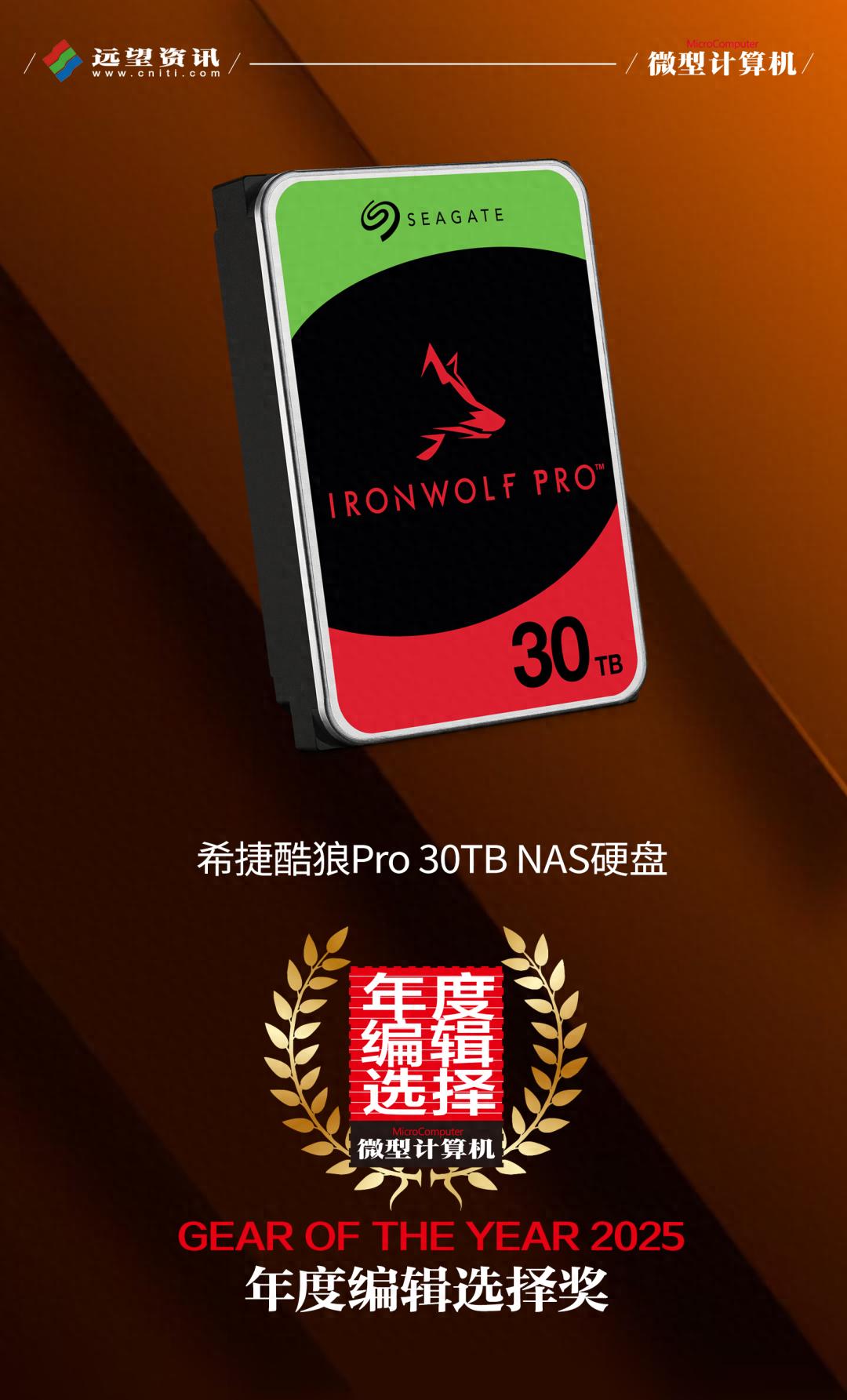希捷酷狼Pro 30TB NAS硬盘以卓越的可靠性与专为NAS场景淬炼的匠心设计,融合30TB海量存储与全天候稳定运行,为NAS多用户协作与数据安全提供坚实保障,斩获2025年度编辑选择奖当之无愧!